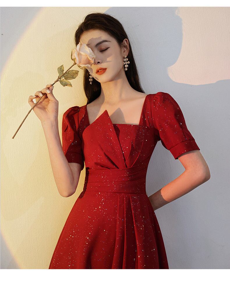 半袖スターライトレッドフォーマルドレスワンピース WWJULY254738594