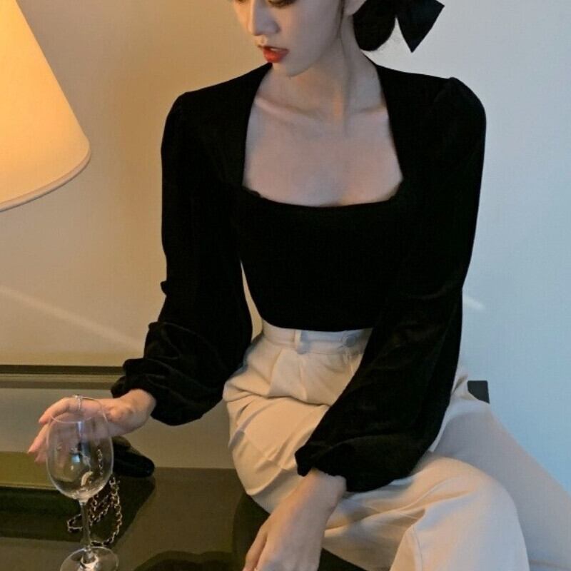 ロング ブラック 長袖 シャツ ブラウス ウィンター 冬物 ピュア 会社 学校 通勤や通学にも アリエクWWJULYストア86640563322