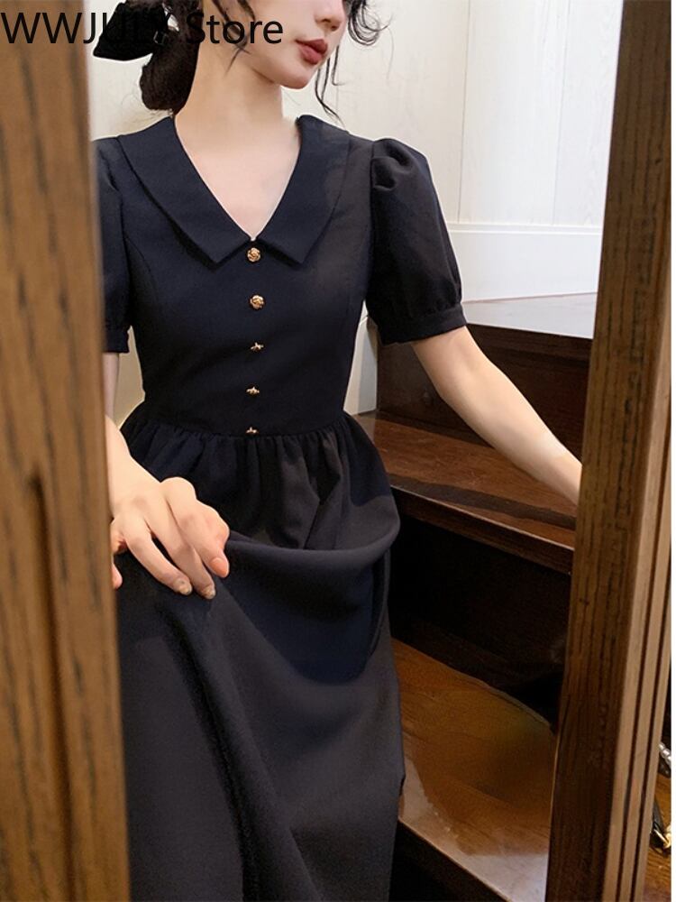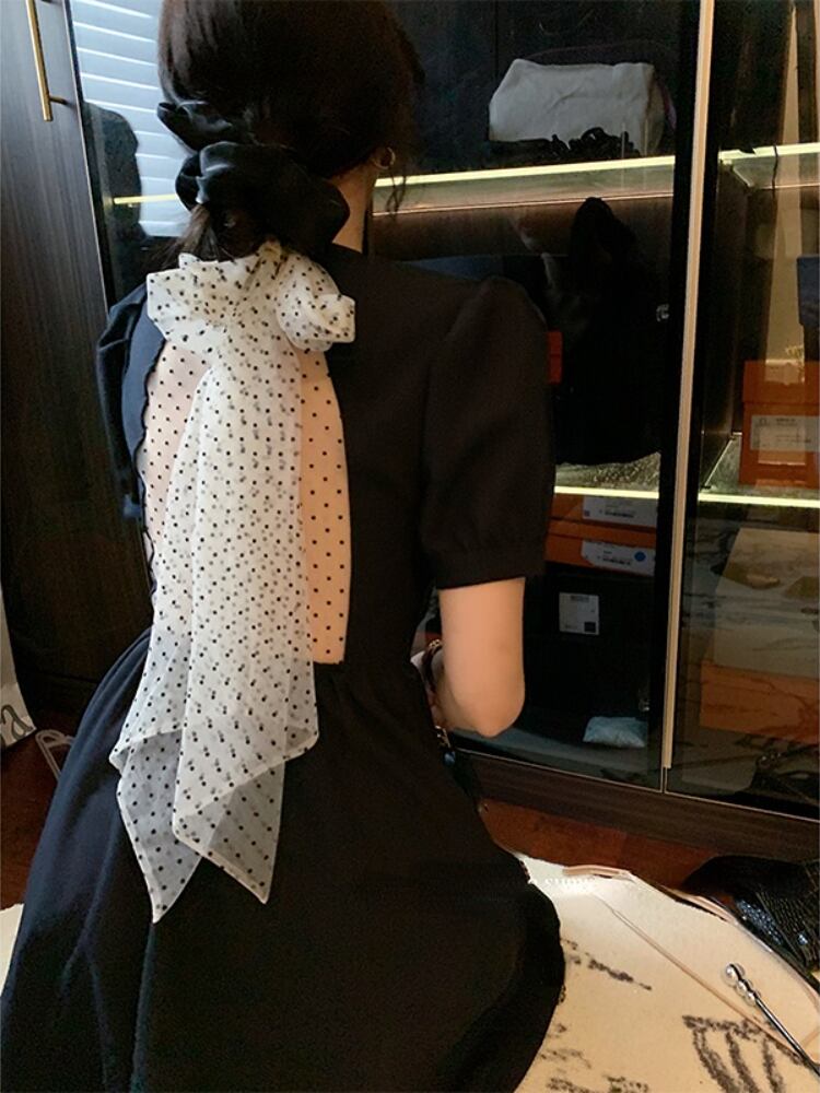 フレンチガーリー バック水玉シフォンリボンブラックワンピース WWJULY25533470234