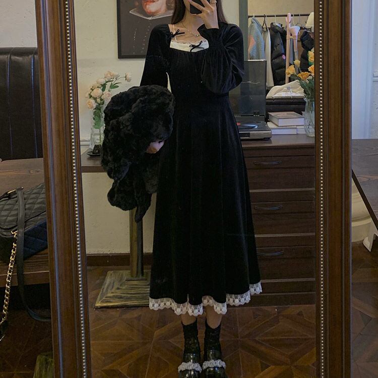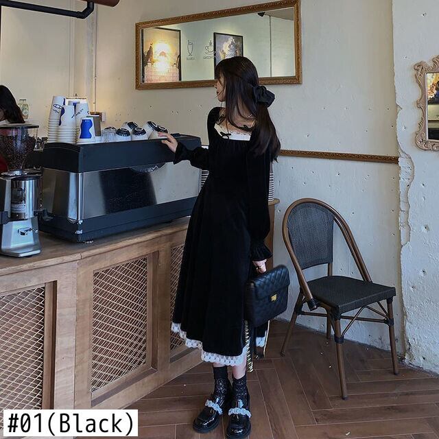 ロング ブラック リボン 長袖 スプリング 春物 スクウェア アリエクWWJULYストア42893960234
