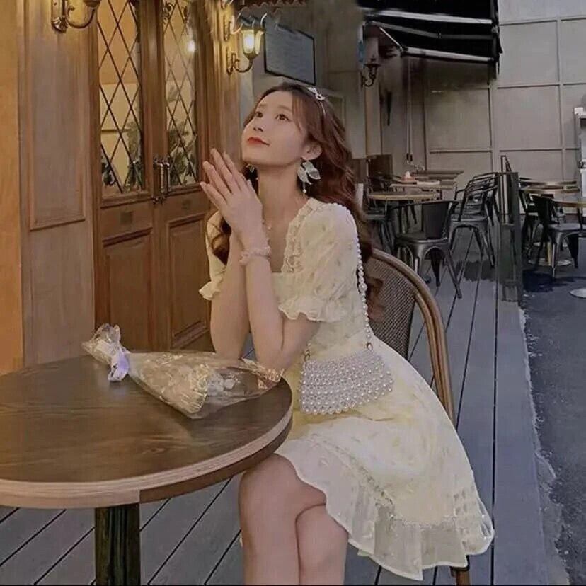 ミニ レース 大人ガーリー スウィート キュート カジュアル サマー 夏物 ドレス レースアップ フラワーデザイン アリエクWWJULYストア30073827193