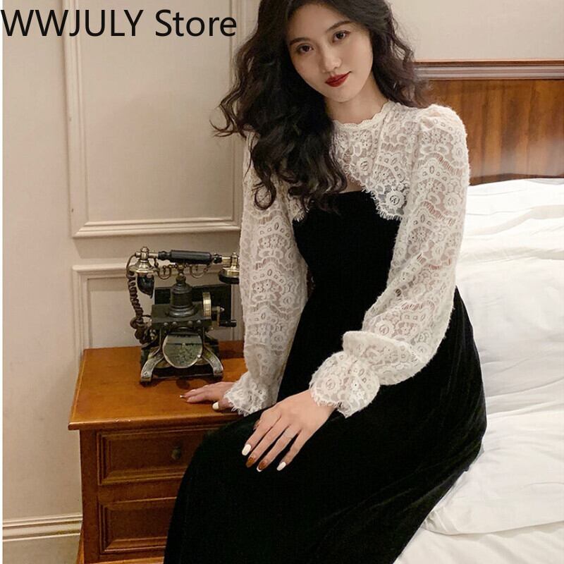 ロング レース 長袖 ウィンター 冬物 ビンテージ 会社 学校 通勤や通学にも アリエクWWJULYストア73189058922