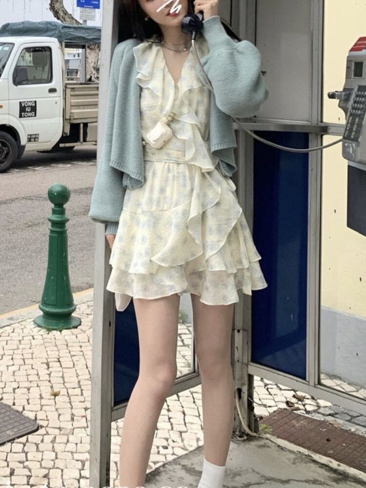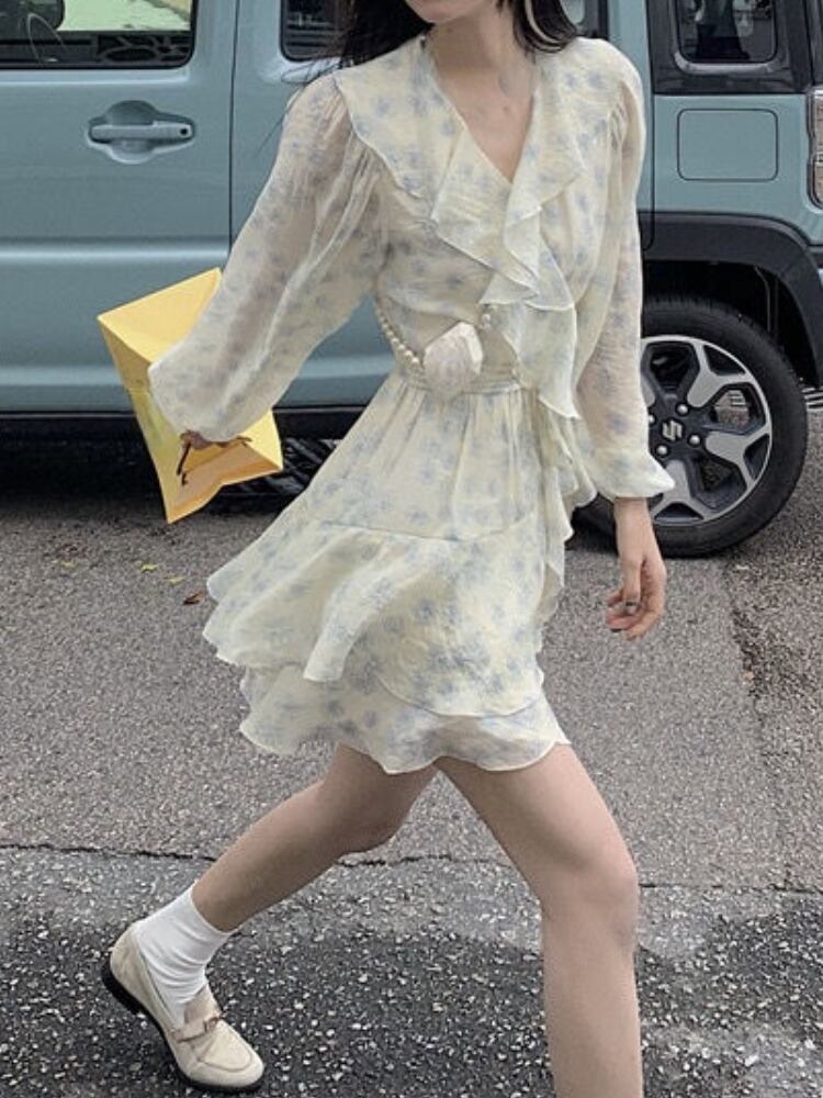ショート ロング ミニ シフォン 長袖 大人ガーリー スウィート キュート カジュアル スプリング 春物 ビーチ 花柄 アリエクWWJULYストア11268360897