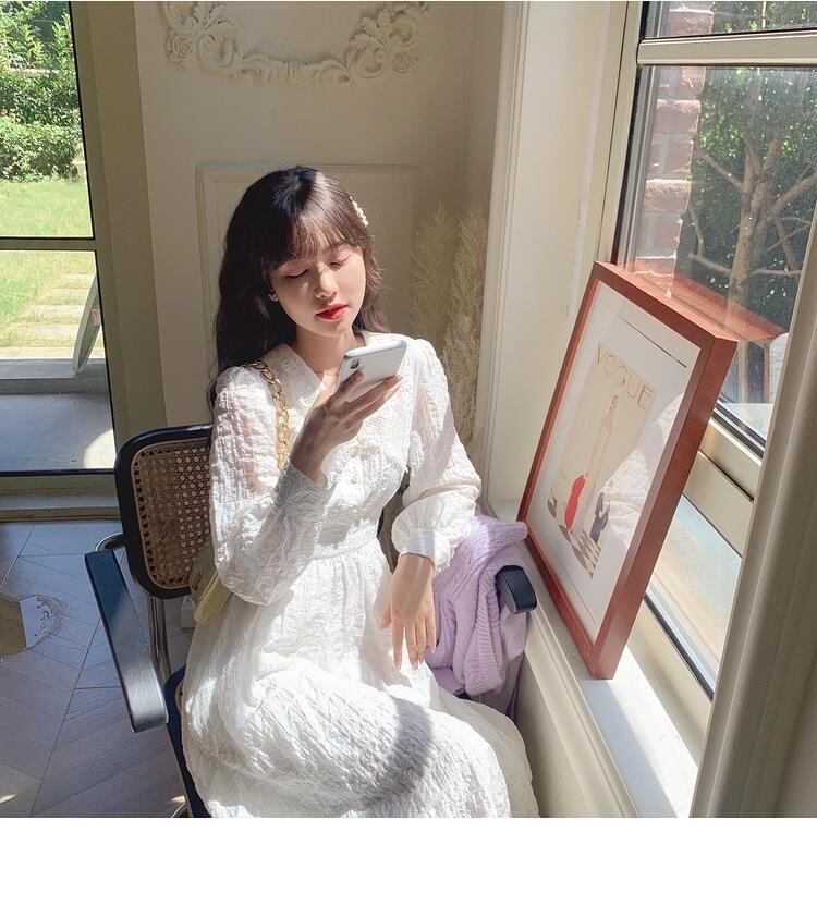 ロング ホワイト 長袖 オータム 秋物 ビンテージ 会社 学校 通勤や通学にも アリエクWWJULYストア52522560756