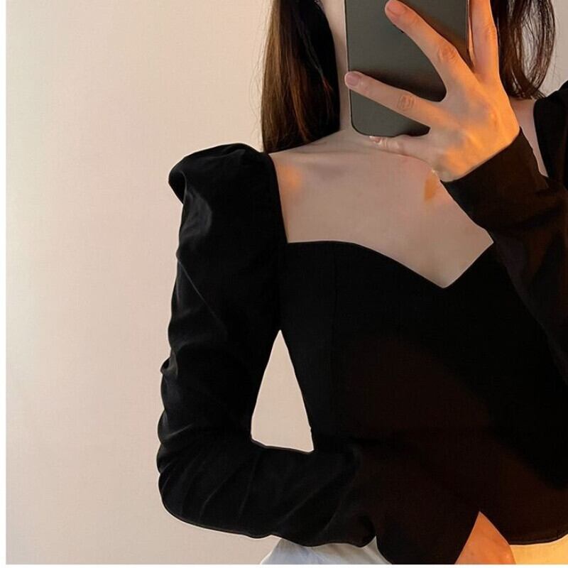 ロング ブラック 長袖 シャツ ブラウス オータム 秋物 ピュア ビンテージ 会社 学校 通勤や通学にも アリエクWWJULYストア9970734751