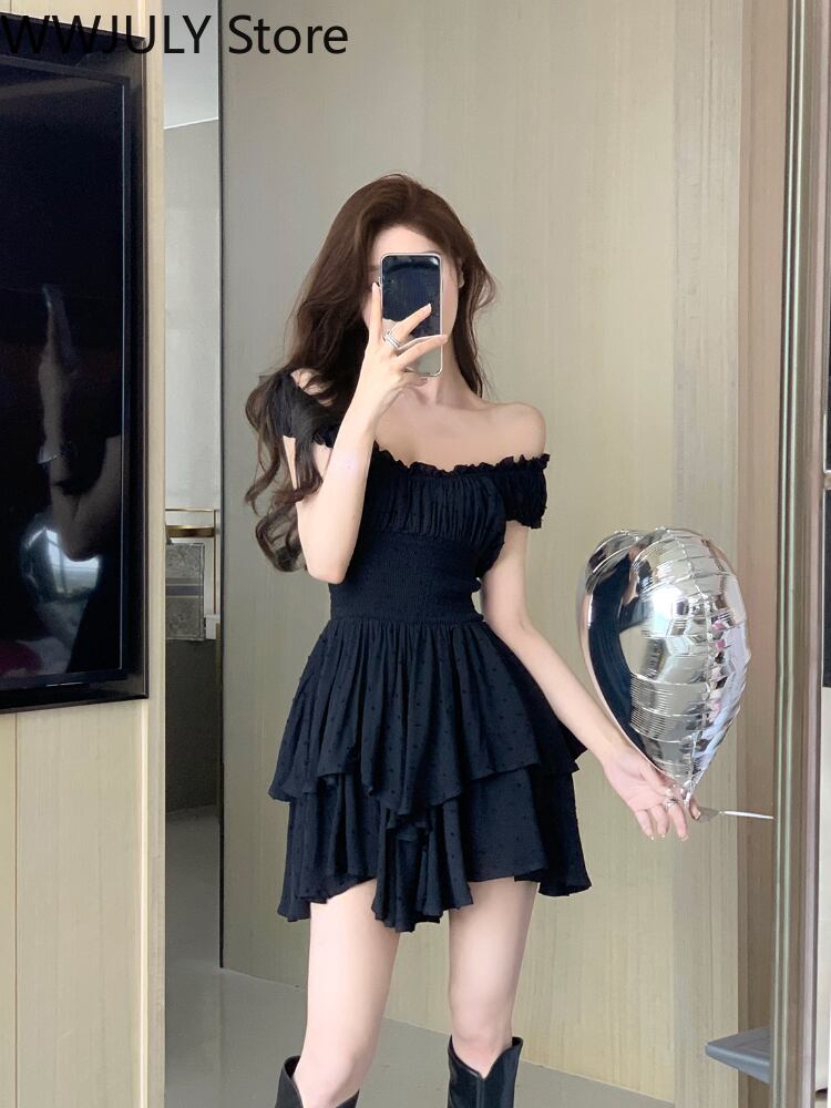 ショート ミニ ブラック 半袖 ハーフスリーブ サマー 夏物 スリム ビンテージ アリエクWWJULYストア46498859008