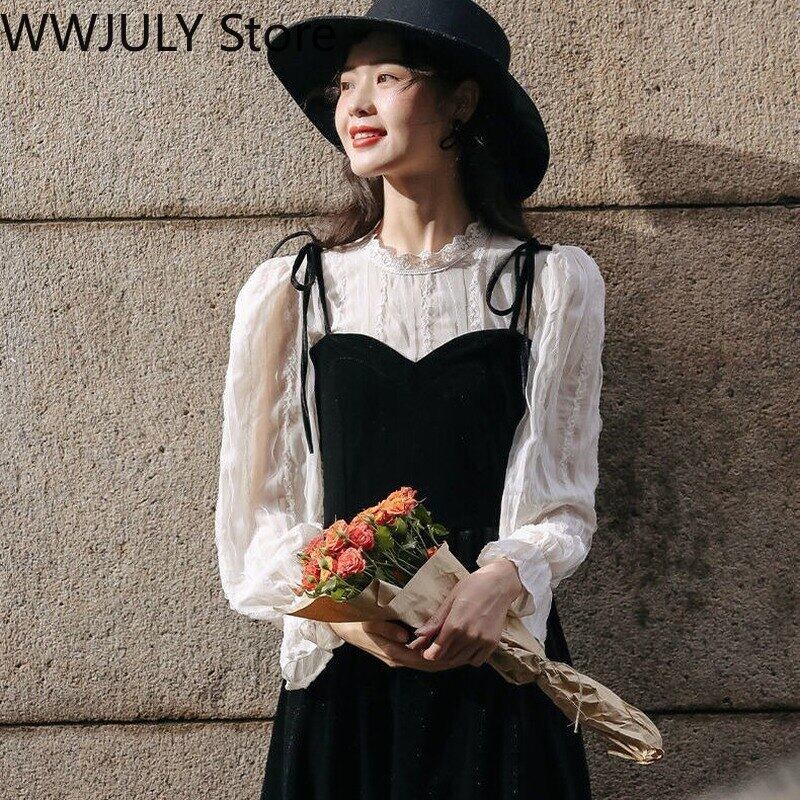 ロング ブラック 長袖 オータム 秋物 ビンテージ アリエクWWJULYストア41517601352