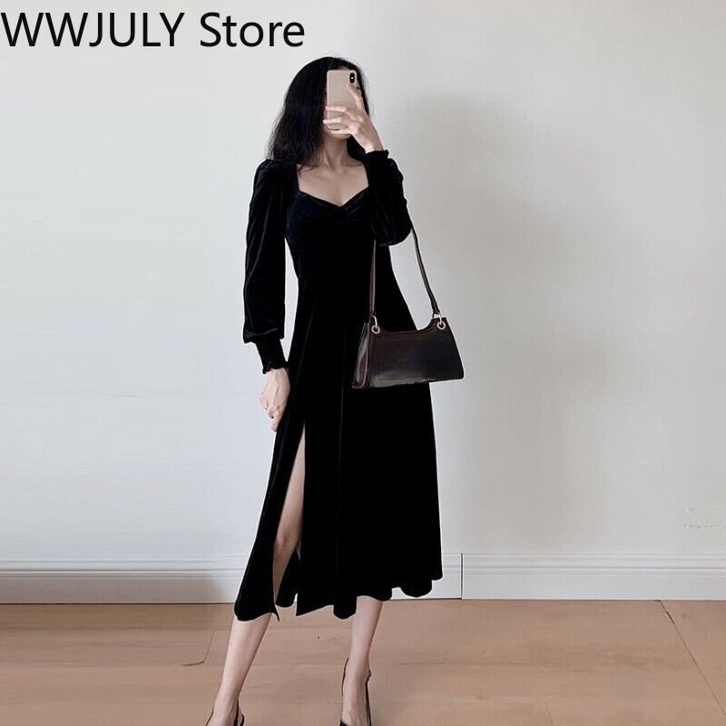 ロング ブラック 長袖 オータム 秋物 ビンテージ 会社 学校 通勤や通学にも アリエクWWJULYストア63892776577