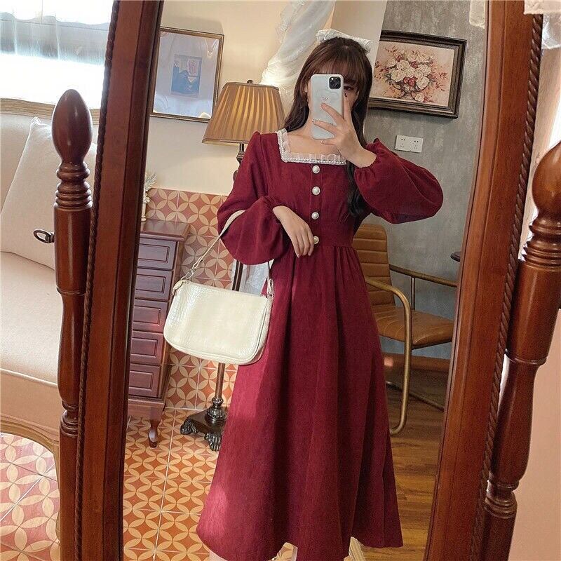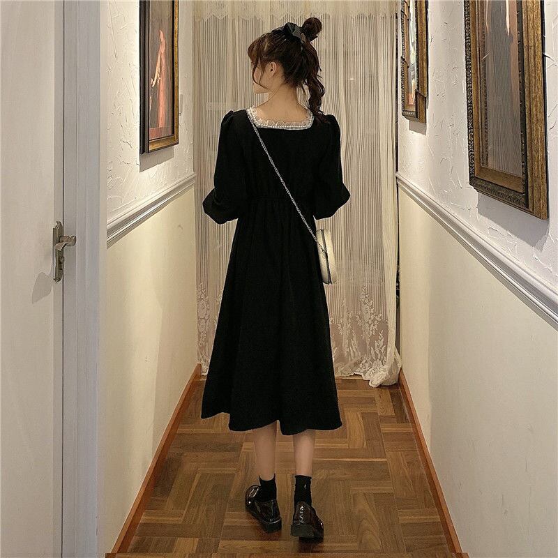 ロング ブラック レトロ レース 長袖 オータム 秋物 スリム レースアップ ビンテージ アリエクWWJULYストア19582340461