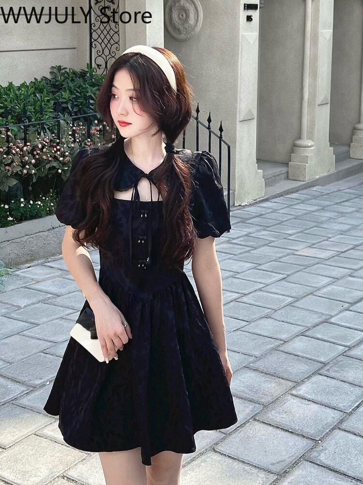 ショート ミニ ブラック 半袖 ハーフスリーブ サマー 夏物 スリム ビンテージ アリエクWWJULYストア5972224979