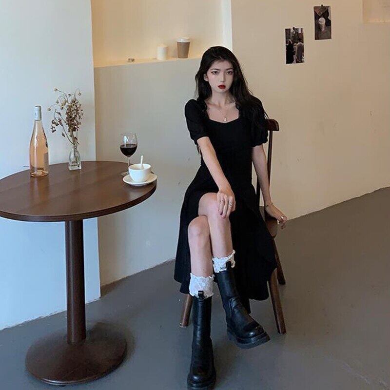 ショート ブラック 半袖 ハーフスリーブ サマー 夏物 ドレス ビンテージ アリエクWWJULYストア6045238651