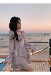 ロング ミニ シフォン レース 長袖 サマー 夏物 ビーチ ピュア アリエクWWJULYストア637393982
