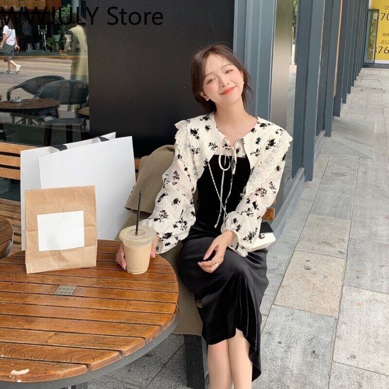 ロング ミニ 長袖 大人ガーリー スウィート キュート カジュアル オータム 秋物 ビンテージ アリエクWWJULYストア59807566870