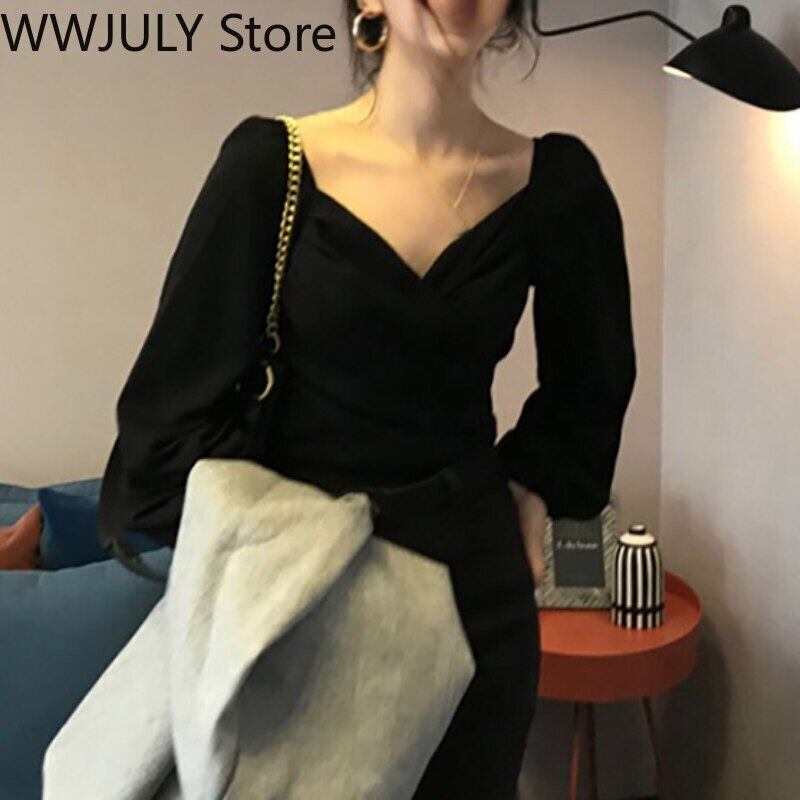 ロング ブラック 長袖 シャツ ブラウス ウィンター 冬物 スリム 会社 学校 通勤や通学にも アリエクWWJULYストア4812211842