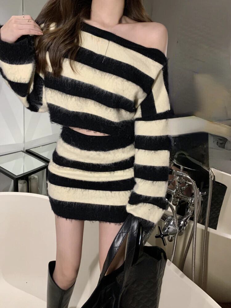 ショート ミニ オータム 秋物 スカート ストライプ スリム アリエクWWJULYストア21606291129