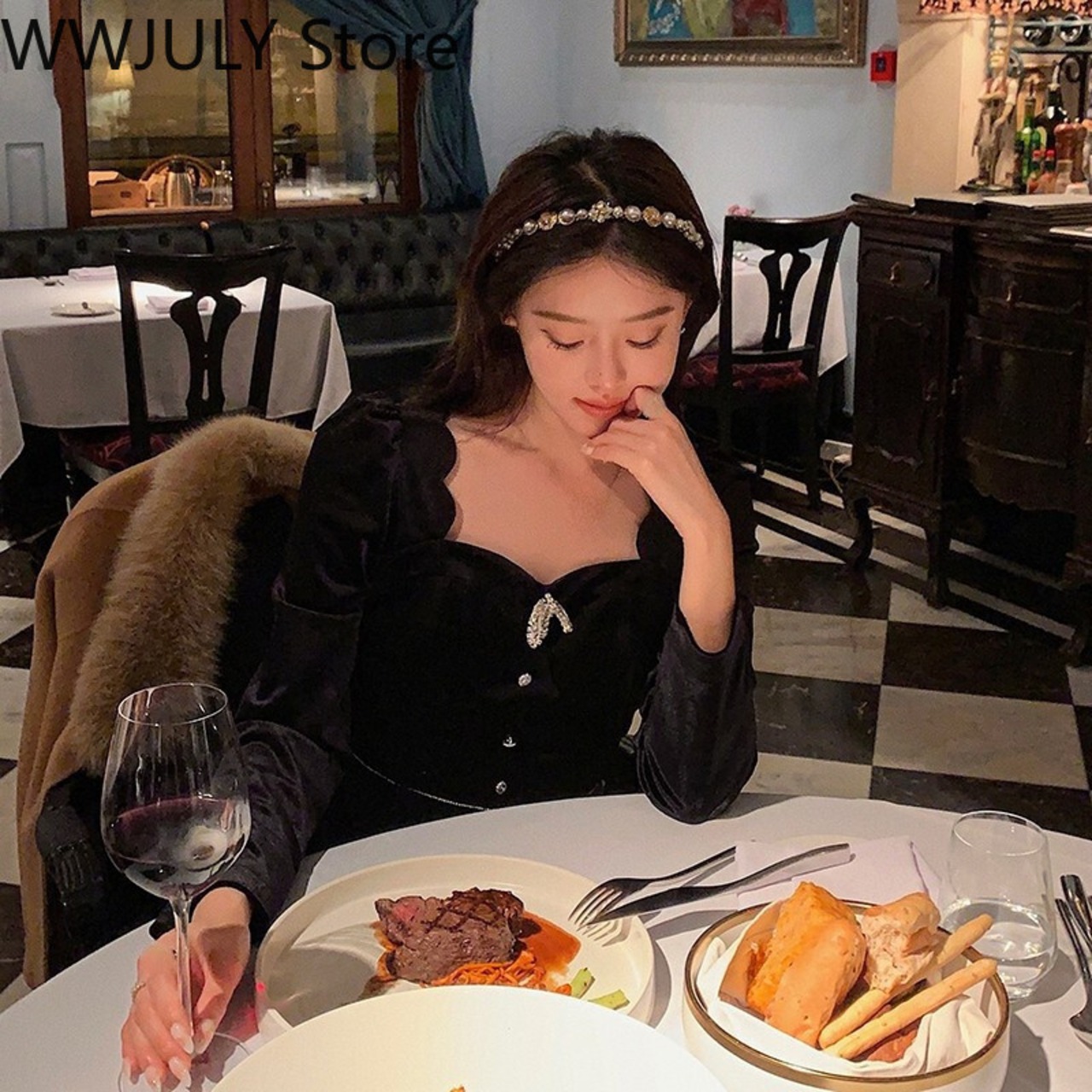 ロング ブラック 長袖 ウィンター 冬物 スクウェア ビンテージ アリエクWWJULYストア85057660682