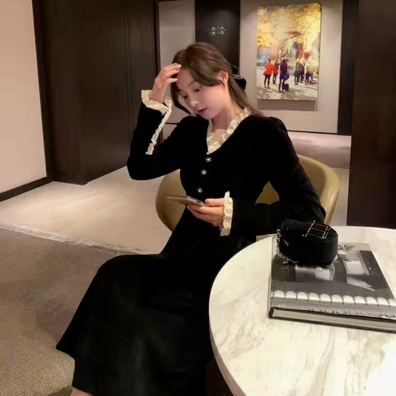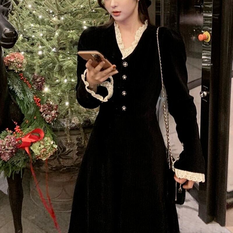 ロング レース 長袖 スプリング 春物 ビンテージ 会社 学校 通勤や通学にも アリエクWWJULYストア99113591355