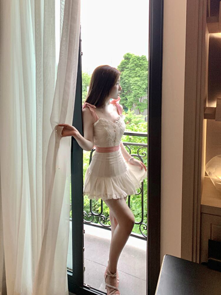 ショート ミニ リボン レトロ レース サマー 夏物 ビーチ アリエクWWJULYストア86137790863