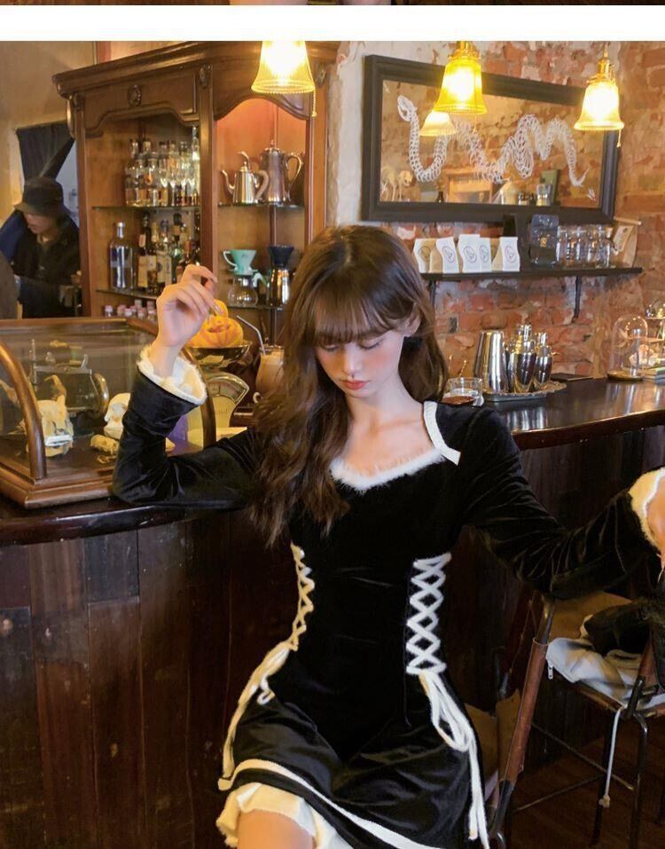 ロング ミニ ブラック 長袖 スプリング 春物 ビンテージ アリエクWWJULYストア62453591457
