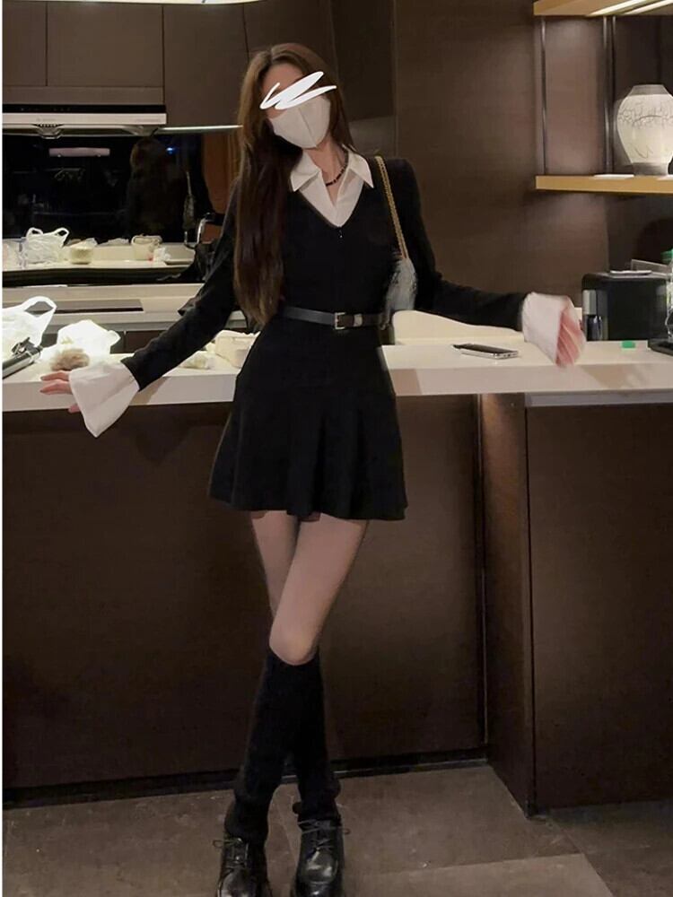 ショート ロング ミニ ブラック 長袖 スプリング 春物 スリム ビンテージ アリエクWWJULYストア20848351845