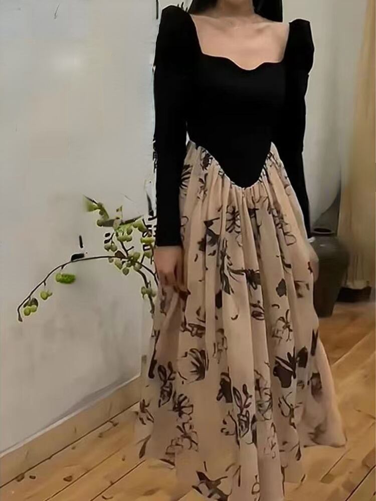 ロング 長袖 オータム 秋物 花柄 スリム ビンテージ アリエクWWJULYストア9505981221