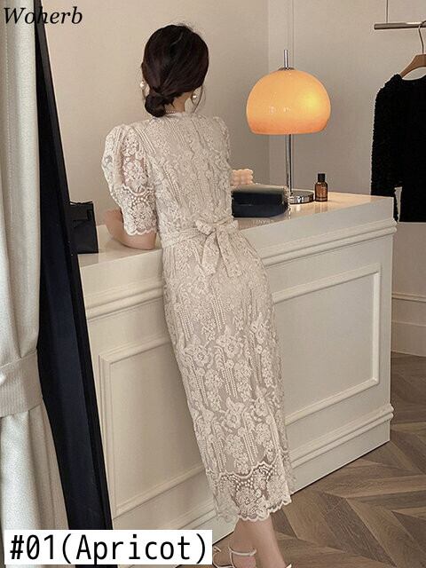 ショート レース 半袖 ハーフスリーブ 大人ガーリー スウィート キュート カジュアル ドレス 花柄 Oネック ビンテージ アリエクWoherbオフィシャルストア39238251334