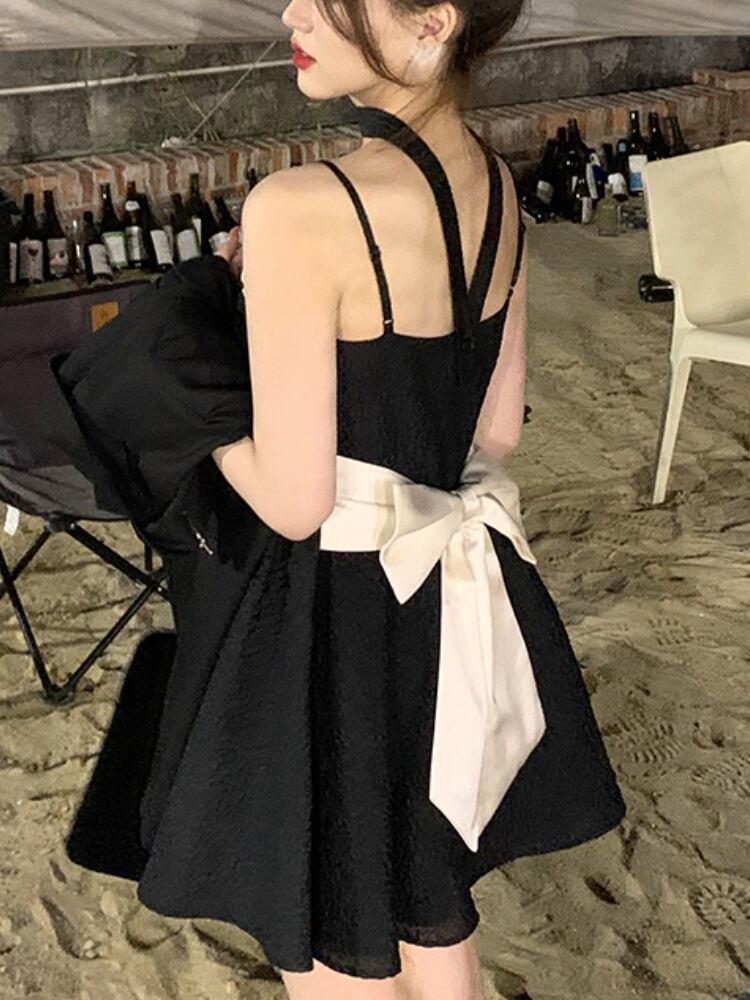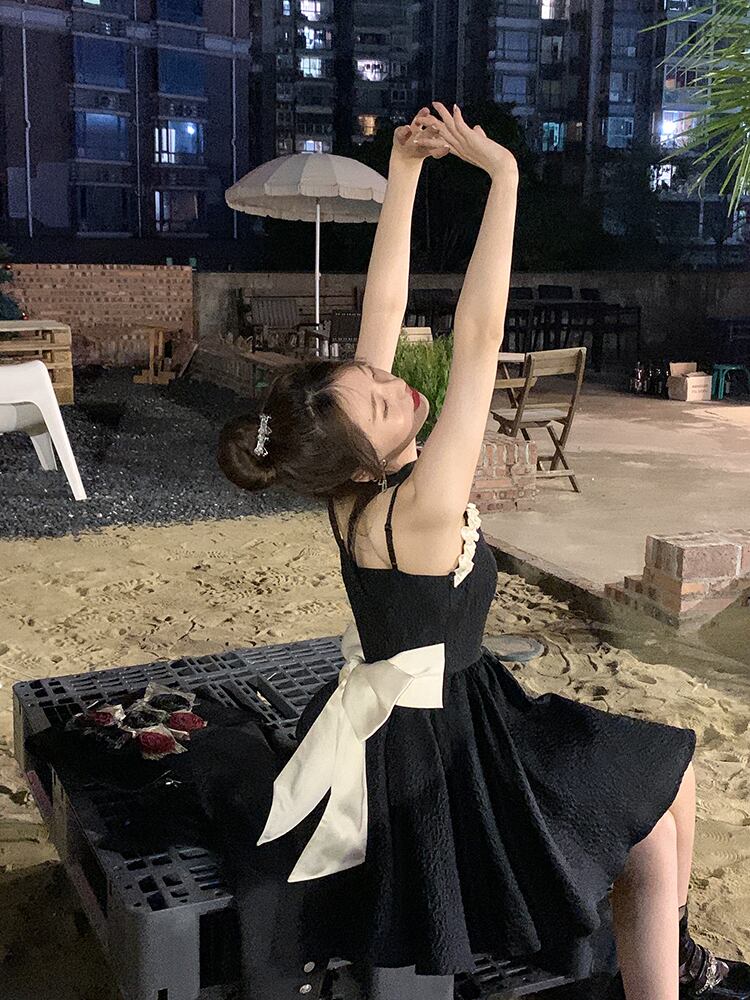 ショート ミニ ブラック リボン サマー 夏物 ビンテージ アリエクWWJULYストア96589996993