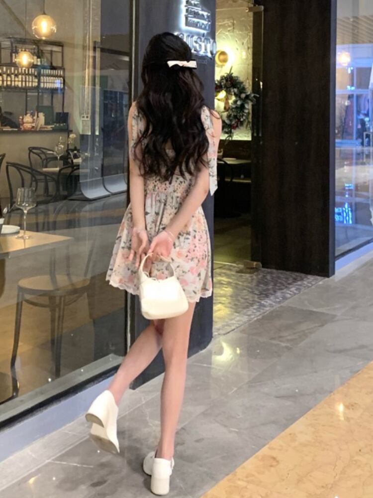 ショート ミニ 大人ガーリー スウィート キュート カジュアル サマー 夏物 ノースリーブ 花柄 ビンテージ アリエクWWJULYストア70511539070