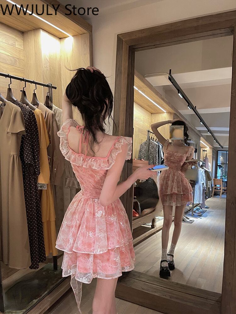 ショート ミニ ピンク レース 大人ガーリー スウィート キュート カジュアル サマー 夏物 ノースリーブ 花柄 アリエクWWJULYストア48841005385