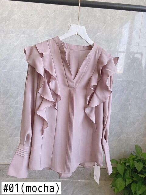 ロング シフォン 長袖 ブラウス 大人ガーリー スウィート キュート カジュアル オータム 秋物 Vネック ソリッドカラー JPLS48017791575