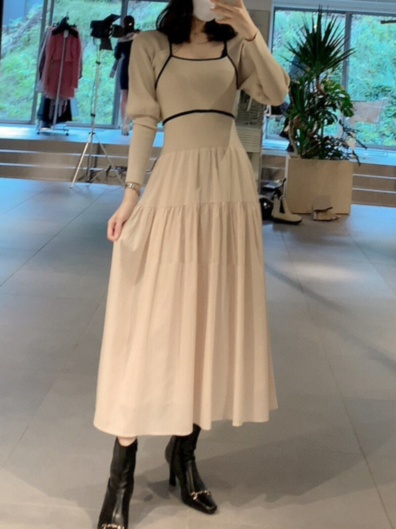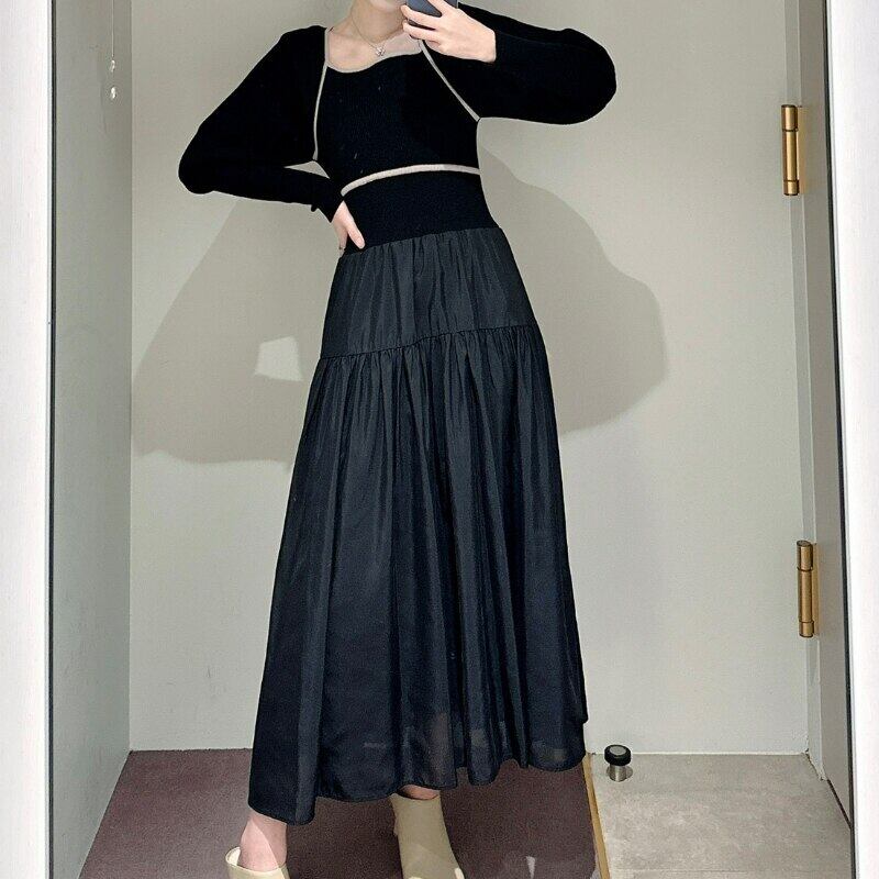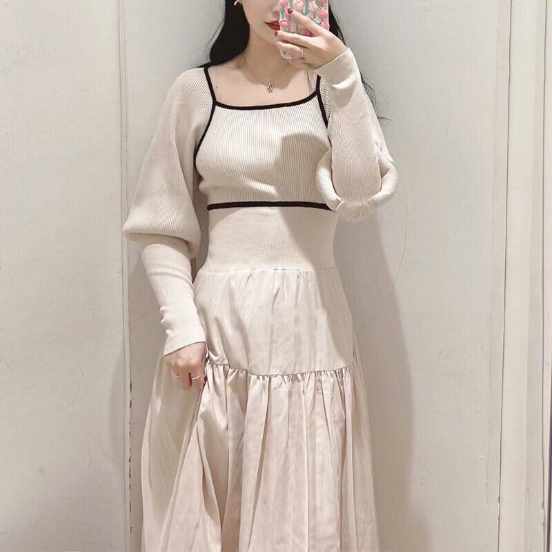 ロング 長袖 ドレス ストライプ スリム スクウェア JPLS29397859370
