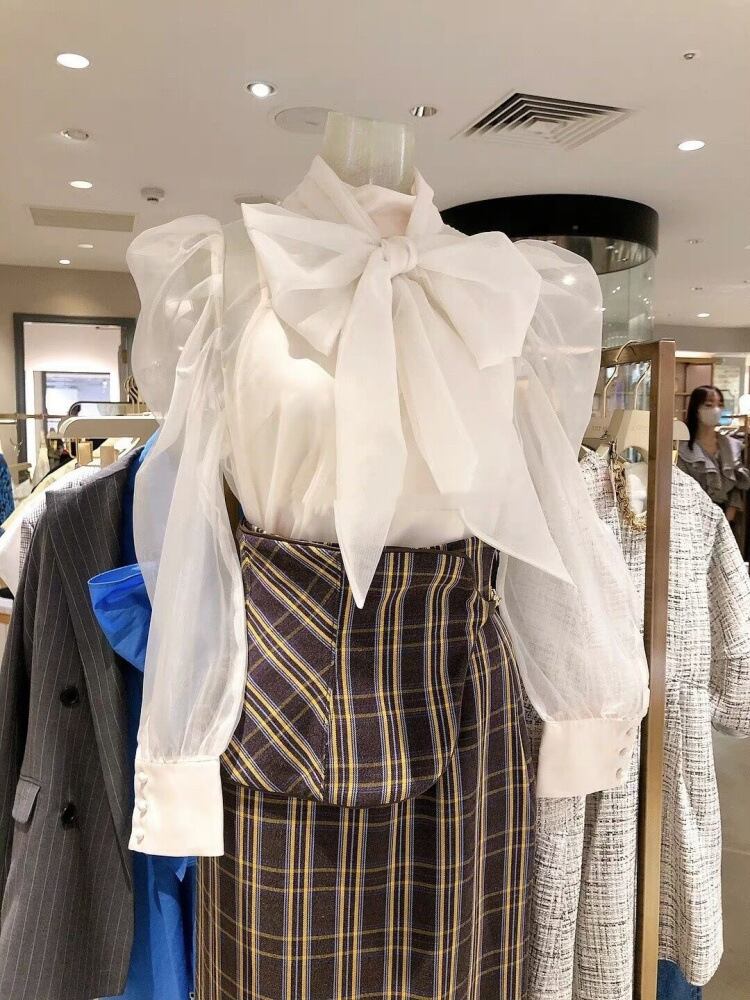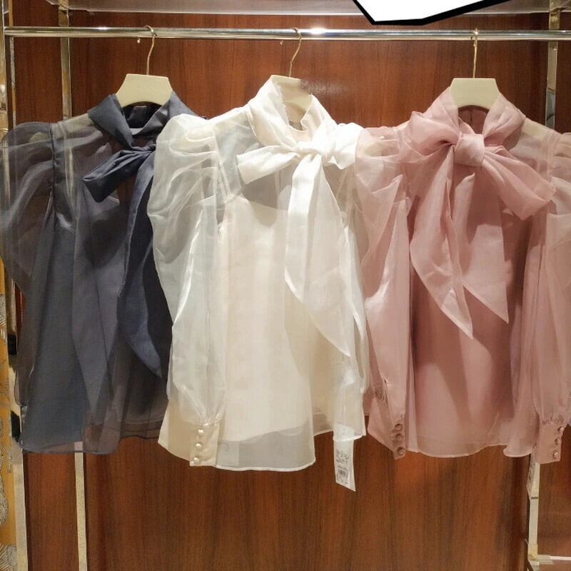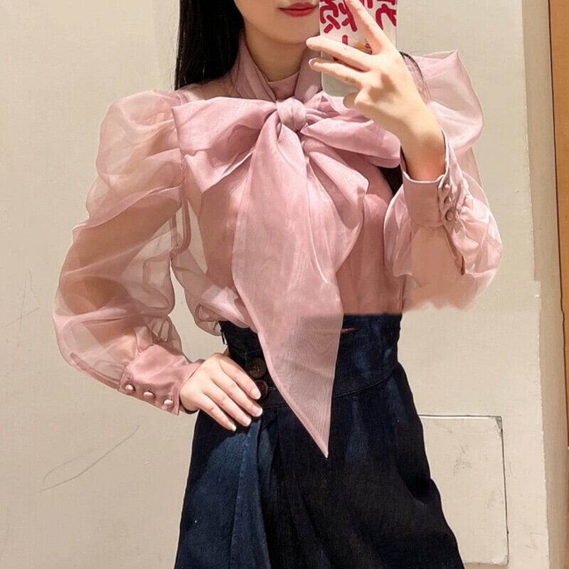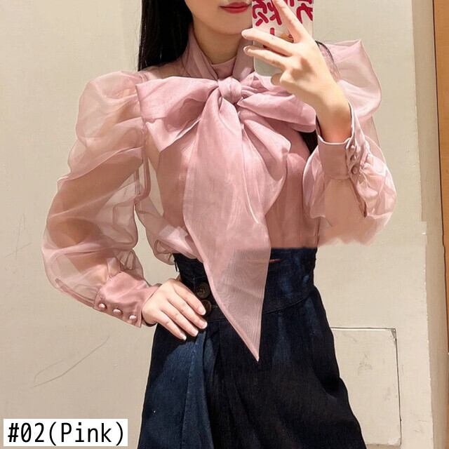 ロング シフォン リボン レース 長袖 ブラウス 大人ガーリー スウィート キュート カジュアル オータム 秋物 レースアップ JPLS80071362656
