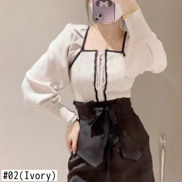 ロング レース 長袖 スプリング 春物 スリム レースアップ ソリッドカラー スクウェア JPLS56037696301