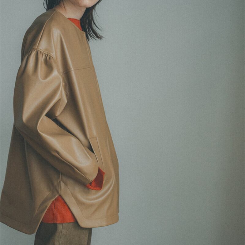 ロング 長袖 オータム 秋物 ウィンター 冬物 レザー Oネック ソリッドカラー JPLS15839850252