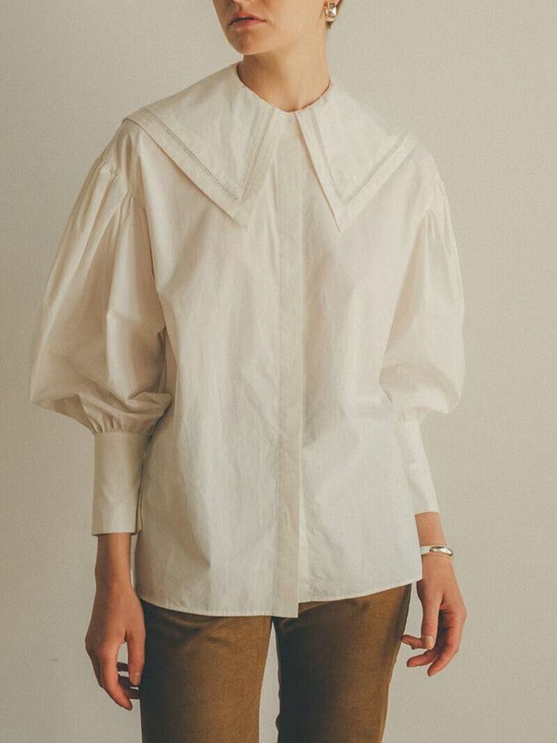 ロング ホワイト ランタンスリーブ シャツ ブラウス 会社 学校 通勤や通学にも JPLS23121877297