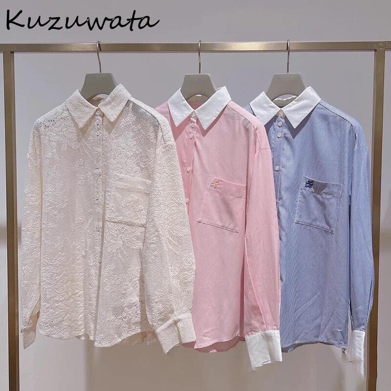 ブラウス 刺繍 オータム 秋物 ストライプ オフショルダー JPLS60649819291
