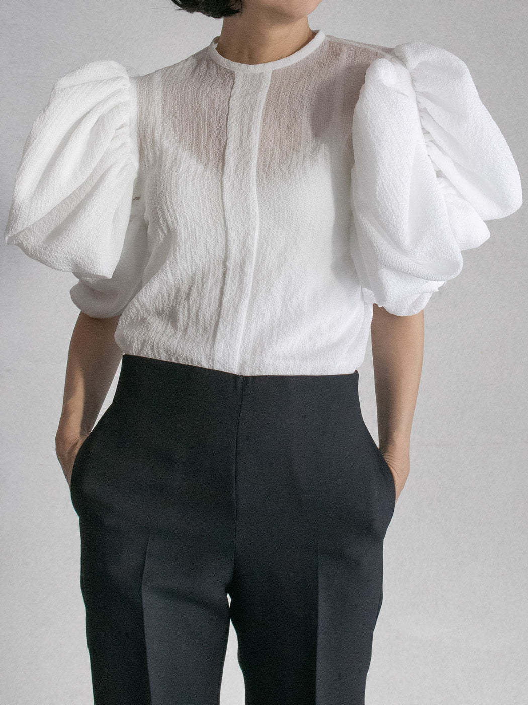 ホワイト シャツ ブラウス 大人ガーリー スウィート キュート カジュアル サマー 夏物 Oネック JPLS37382040269