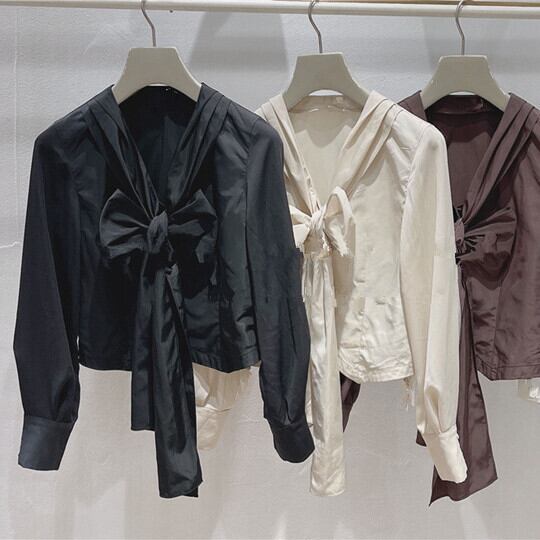 ロング リボン 長袖 シャツ ブラウス 大人ガーリー スウィート キュート カジュアル オータム 秋物 ウィンター 冬物 ソリッドカラー JPLS67019737755