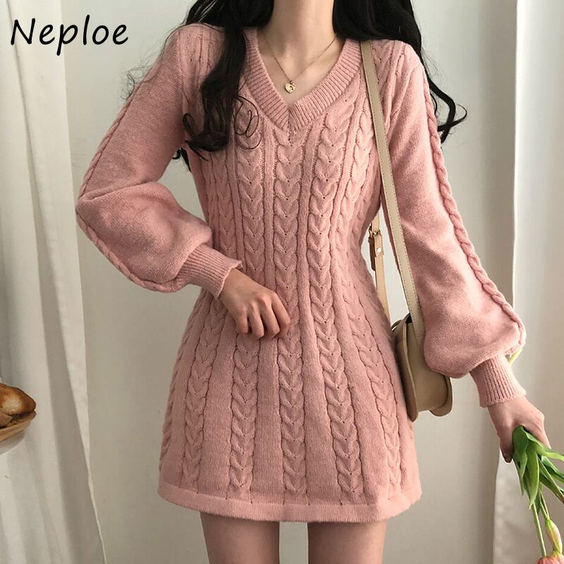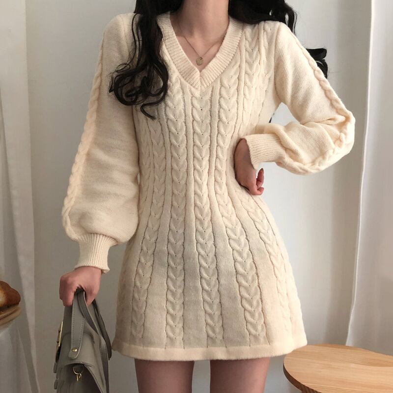 ショート ランタンスリーブ ドレス Vネック ソリッドカラー JPLS72318722101