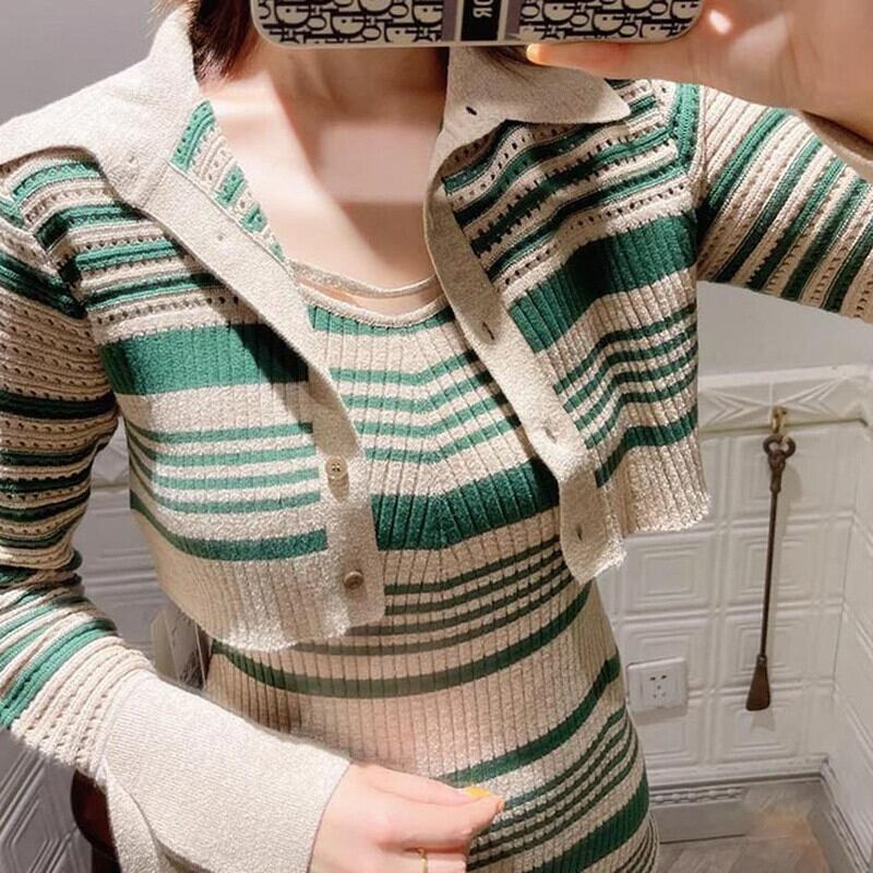 ショート ロング 長袖 カーディガン ストライプ JPLS18014041807