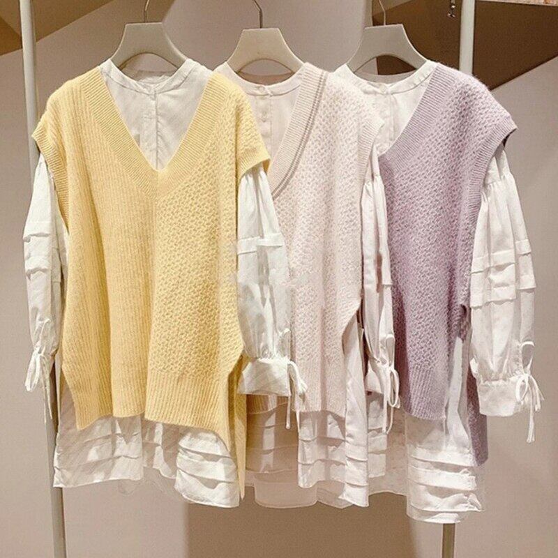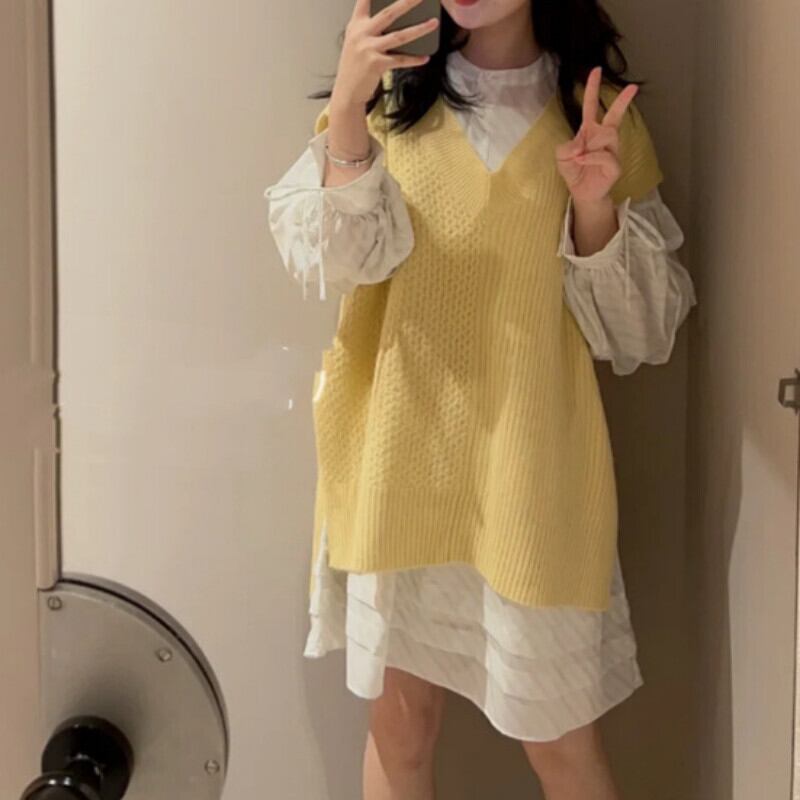 ロング 長袖 オータム 秋物 Vネック ソリッドカラー JPLS80094668807