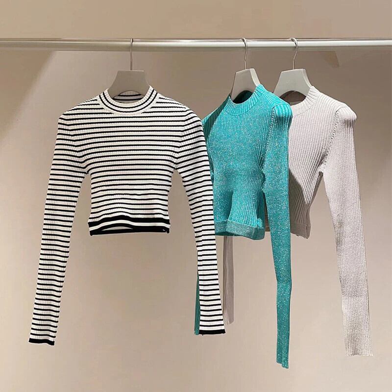 ショート ロング 長袖 大人ガーリー スウィート キュート カジュアル Oネック ストライプ スリム JPLS54373763535