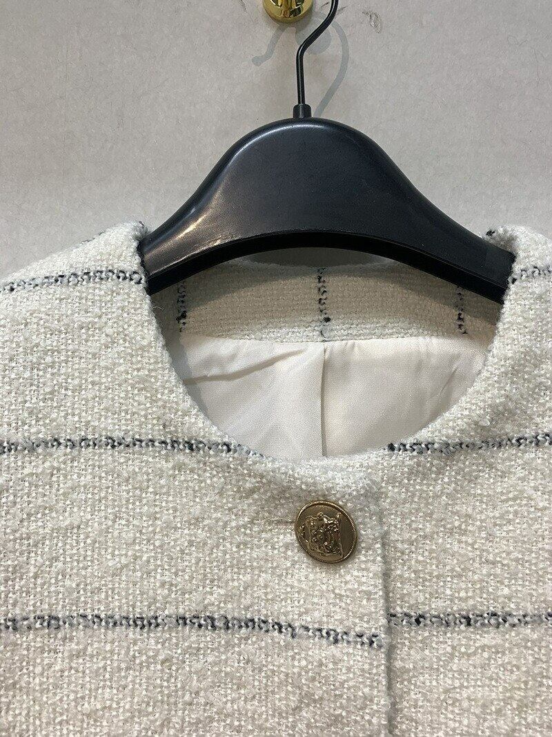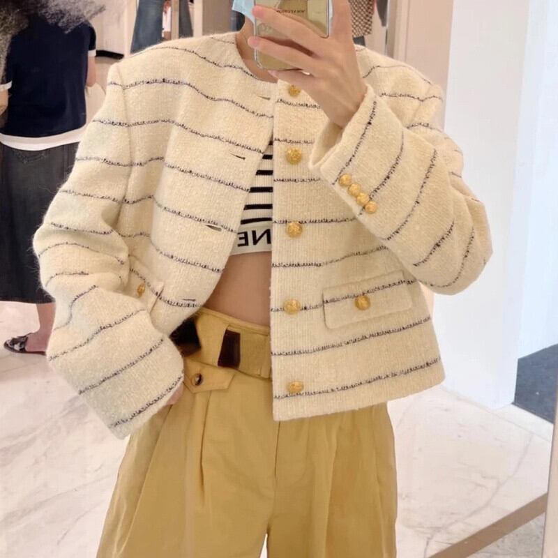 ショート ロング レトロ 長袖 オータム 秋物 Oネック ストライプ JPLS50559624605