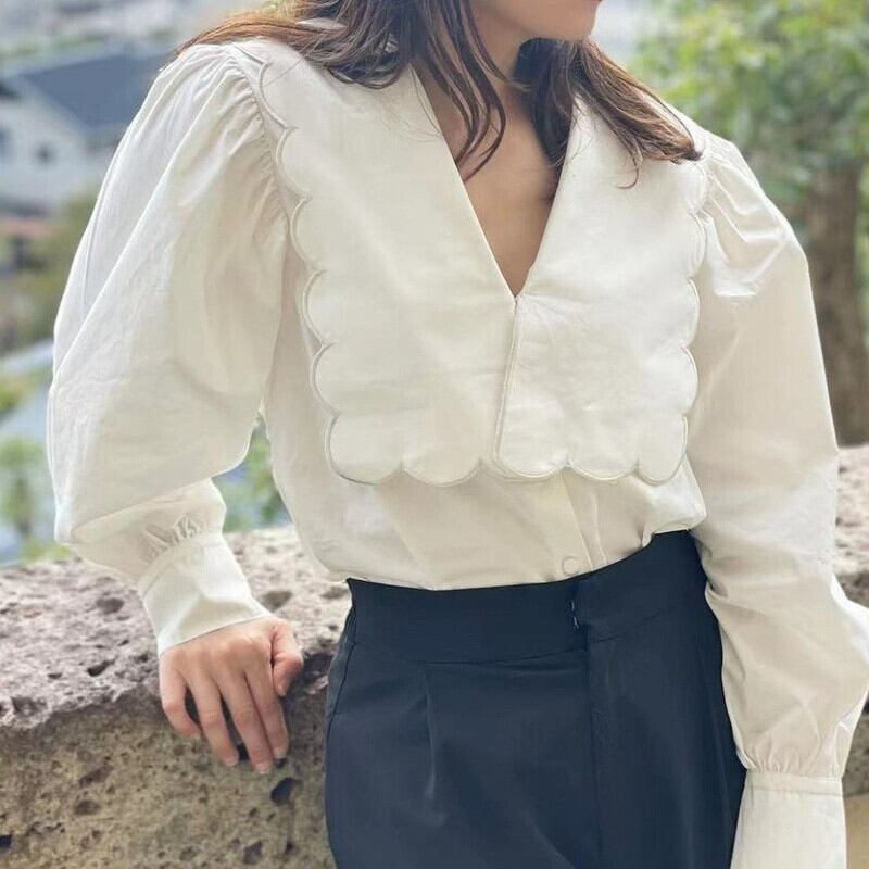 ロング ホワイト レトロ 長袖 シャツ ブラウス 大人ガーリー スウィート キュート カジュアル サマー 夏物 JPLS95611563446