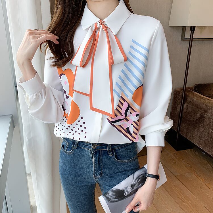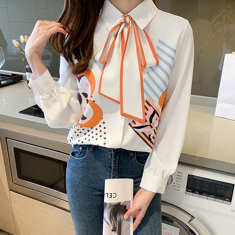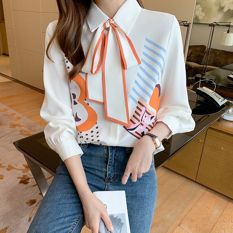 シフォン リボン ブラウス オータム 秋物 会社 学校 通勤や通学にも A-HHan23441896393