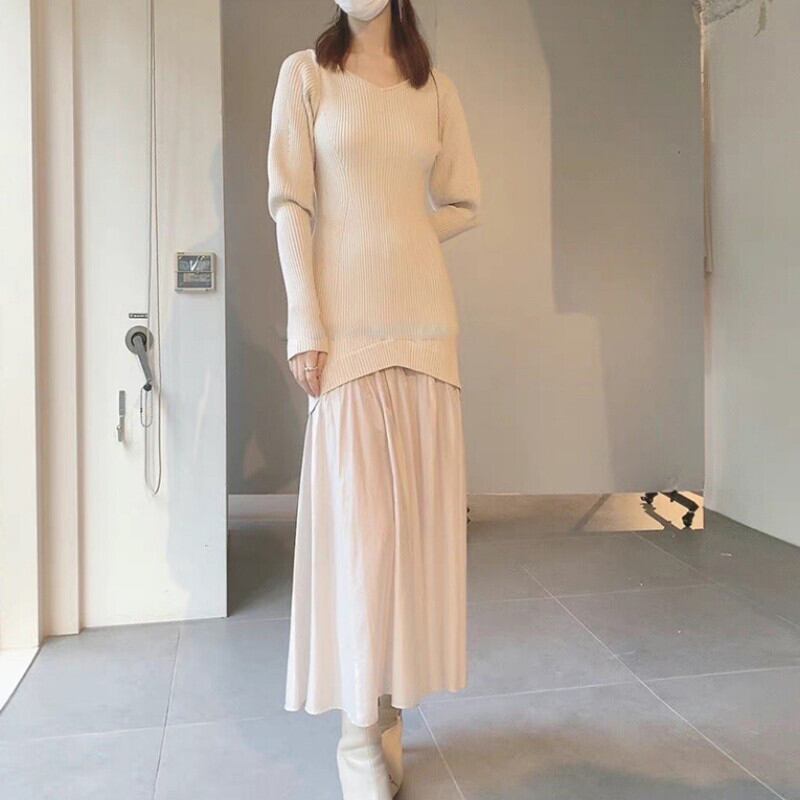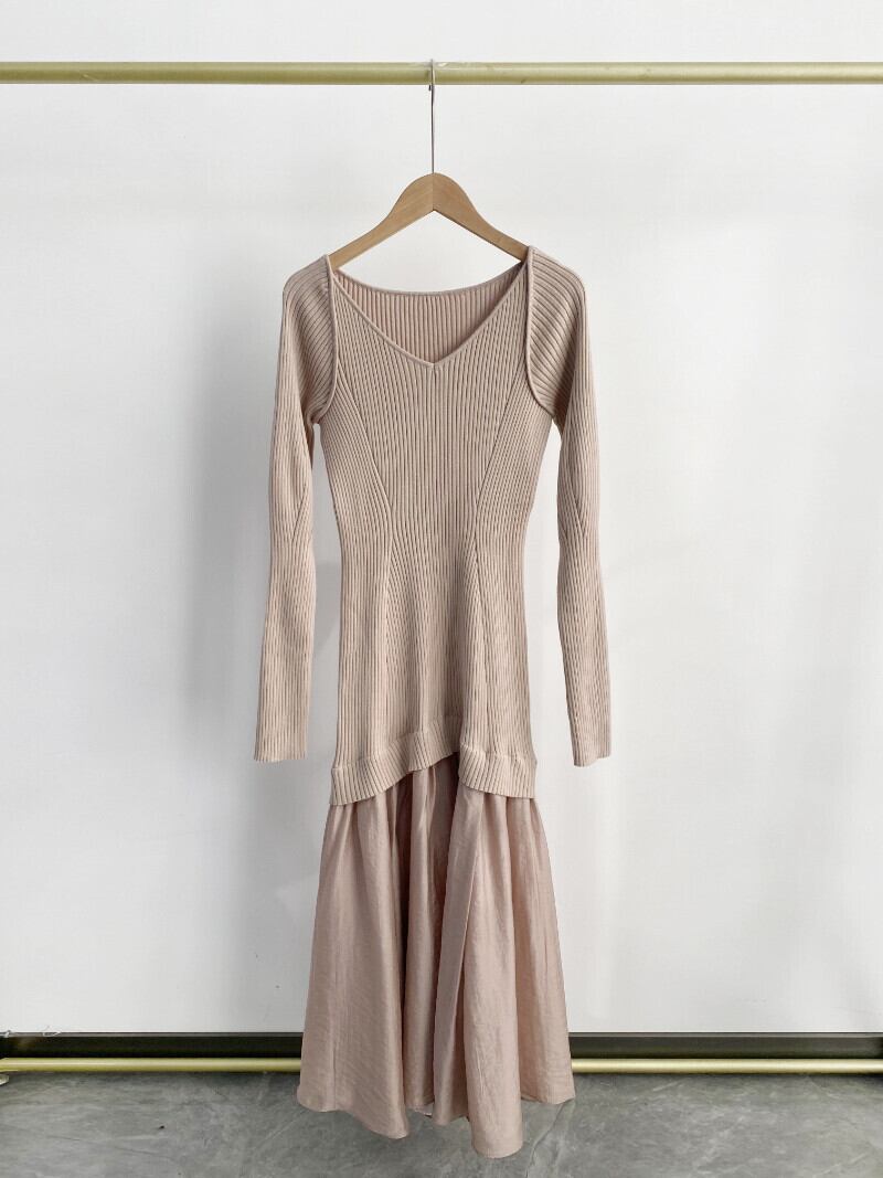 ロング 長袖 オータム 秋物 ウィンター 冬物 ドレス Vネック ソリッドカラー JPLS4748482821