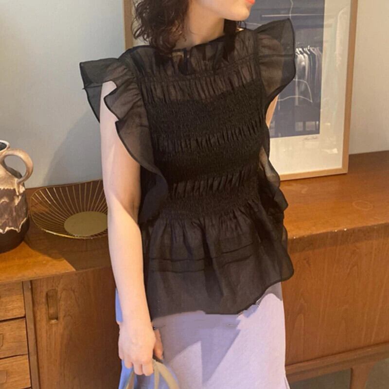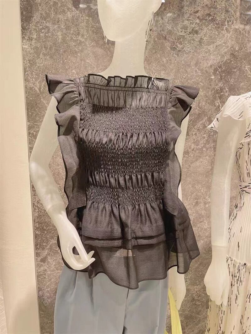 シフォン ブラウス エラスティック 伸縮 プリーツ オータム 秋物 スリム ソリッドカラー JPLS50178194605