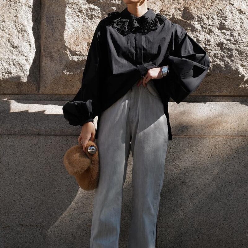 ロング レトロ レース シャツ ブラウス スプリング 春物 スリム JPLS74794461208
