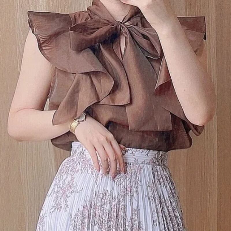 リボン レース フリル ラッフル ブラウス 大人ガーリー スウィート キュート カジュアル サマー 夏物 レースアップ JPLS76728784731