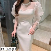 フレアスリーブ メッシュ ドレス Oネック JPLS26364520670